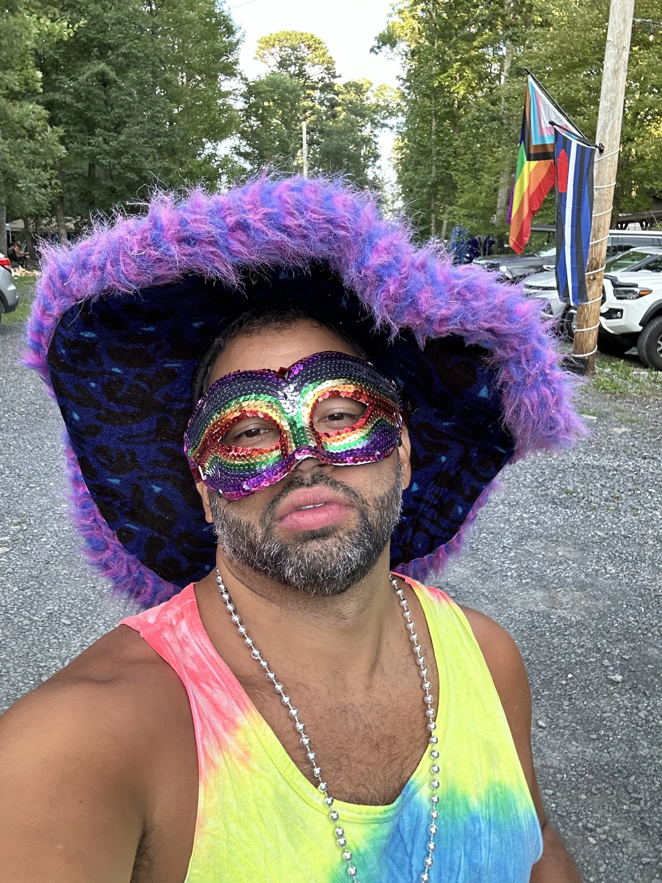 I’m new to the whole LETS GET NAKED and run around outside thing… but I don’t hate it. A couple summers ago I had the distinct honor to go to The Woods Campground (which I’ll explain more about at the end of this post), and it was my first experience with outdoor nudity. And, it was a fun ass time. The thing that made it the most fun was that it was all gay men running around in different themed outfits each day we were there.